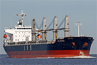 23rd ship of a series of identically constructed open hatch dry cargo ships (30 vessels), also see >Kumano Lily< - this series is almost identical in construction to a series of 41 Handymax bulk carriers, see also >Paola< here as an example - equipped with 4 cranes of a lifting capacity of 30.5 ts each |