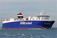 Einzelschiff - Ladungsmeter: 2.160 - nun mit geändertem Schriftzug "Airbus onboard" am Rumpf |