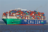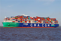8th ship of a series of identically constructed container ships of the sonamed CMA CGM "Megamax-24" series (9 vessels), also see >CMA CGM Rivoli< and >CMA CGM Concorde< - this is the first "Megamax" container ship class in the world to operate on liquefied natural gas (LNG) as standard |