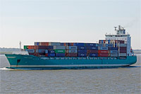 13th ship of a series of identically constructed feeder container ships of Peene-Shipyard type "improved Baltic-Max PW 1400" (14 vessels), also see >Cape Fulmar< and (>OOCL Novgorod<, >A La Marine<) + 2 vessels of type "Baltic-Max PW 1400", here also see >Emotion< and >Empire< - now after change of owner and with additional operator |