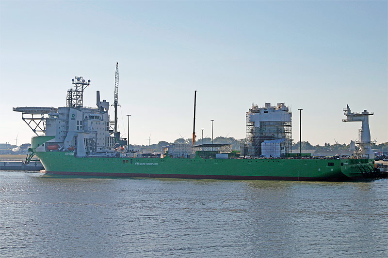 in Cuxhaven, am Liegeplatz 4 des Cuxport-Terminal 1, Europakai liegend