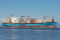 4. Schiff einer Serie baugleicher Containerschiffe dieser Werft (1. Generation, 10 Einheiten), siehe auch >Maersk Newcastle<, >Ocean Promise<, >Evridiki G< und >Christiane Schulte< - siehe auch das Typschiff der 2. Generation: (>Cap Beaufort<, >HSL Sheffield<) sowie das Typschiff der 3. Generation: >Maersk Niagara< - ausgestattet mit 4 Kranen á 45 ts Tragfähigkeit |