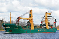 6th ship of a series of type identical multi purpose dry cargo ships of type "Bodewes Trader 7800 geared" (17 vessels - high superstructure, with cargo gear), also see >Nordland<, >Wisaforest<, >Velserdiep<, >OSC Vlistdiep<, >BBC Seattle<, (>Onego Traveller<, >Vennendiep<), >OSC Victoriadiep< and >Mercs Uhana< - hull yard: ATVT Sudnobudivnyi Zavod "Zaliv", Kerch, Ukraine (No. 643), equipped with 2 cranes of a lifting capacity of 60 ts each - without cargo gear: also see the type ship >Vechtdiep< |