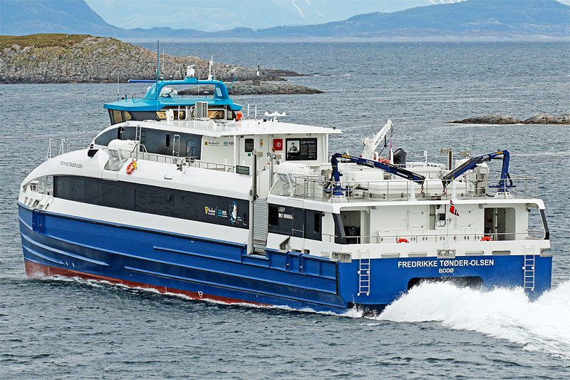 Traena, "Husoey" island (Nordland, N), leaving the harbour on a northeastern course, bound for "Sandnessjoeen"