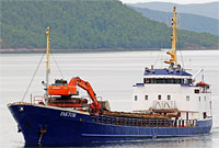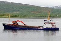 type ship of series of identically constructed coastal cargo liners (3 vessels) - the original cargo gear (2 derricks) is replaced by a gantry excavator |