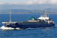 2. Schiff einer Serie baugleicher Küstenmotorschiffe (3 Einheiten), siehe auch (>Sea Box<, SDK Spain) - ausgestattet mit 1 Portalbagger "Kobelco SK 35" |