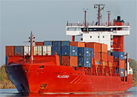 4. Schiff einer Serie baugleicher Feeder-Containerschiffe vom Sietas Typ 168b (13 Einheiten - keine deutsche Eis-Klasse, Open hatch-Containerschiff; offene, überdachte Nock, schwarze Fensterrahmen, 1 geschweißtes Deck), siehe auch >Larissa<, >Holland Maas Habana<, >Angela<, (>Actuaria<, >Ara Atlantis<, >Emily Borchard<), (>Max Linus Dede<, >Andante<) und (>Buxtehude<, >Dagmar<) - siehe auch >OOCL Nevskiy< (Standard-Typ 168) und >Maersk Flensburg< (Typ 168a) - Rumpfhersteller: Daewoo Mangalia Heavy Industries S.A., Mangalia, Jud. Constanta, Rumänien (Nr. 4043) - siehe auch >Ruth Borchard< (2008) |