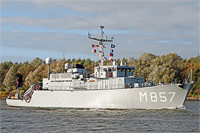 8th Dutch "Alkmaar" ("Tripartite") class coastal minehunter [MHC] (original 15 vessels), also see >HNLMS Schiedam<, >HNLMS Zierikzee< and >HNLMS Vlaardingen< - 5 of them were later sold to Latvia, here also see >Visvaldis<, >Imanta< and >Viesturs< - (all in all 35 vessels for Belgium, France and the Netherlands), also see exemplary >BNS Crocus< (BE) and >Pegase< (FR) - main armament: currently none |