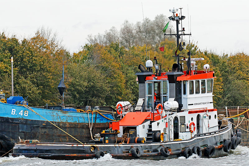 as part of a pushing unit with a barge