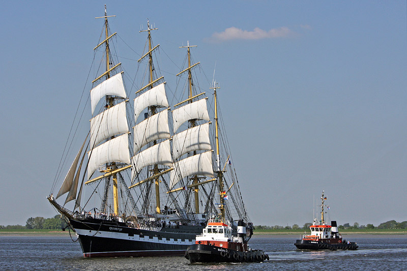 . On the occasion of the Hamburg harbour birthday 2008, both tugs are assisting during tacking, to join the following entering parade.