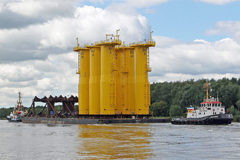 as part of a dragging unit with flat top barge