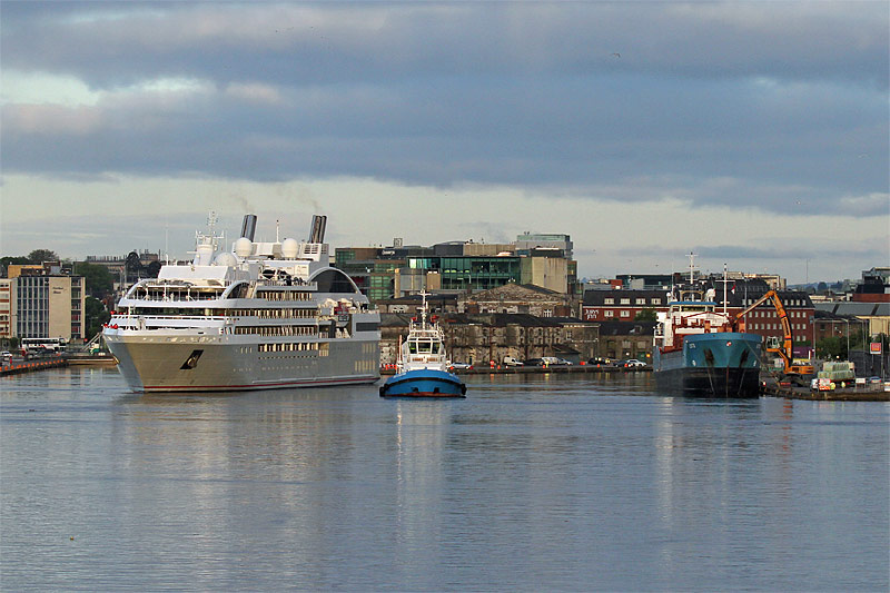 | Comment | the early morning hours - view towards the western end of the city harbour, where the river "Lee" divides in its northern and southern part. The cruise liner Le Soleal is on the way to "Anderson's Quay". The tug Gerry O'Sullivan is waiting if assistance is required. On the right you can see the cargo ship Cito at "Horgan's Quay". |