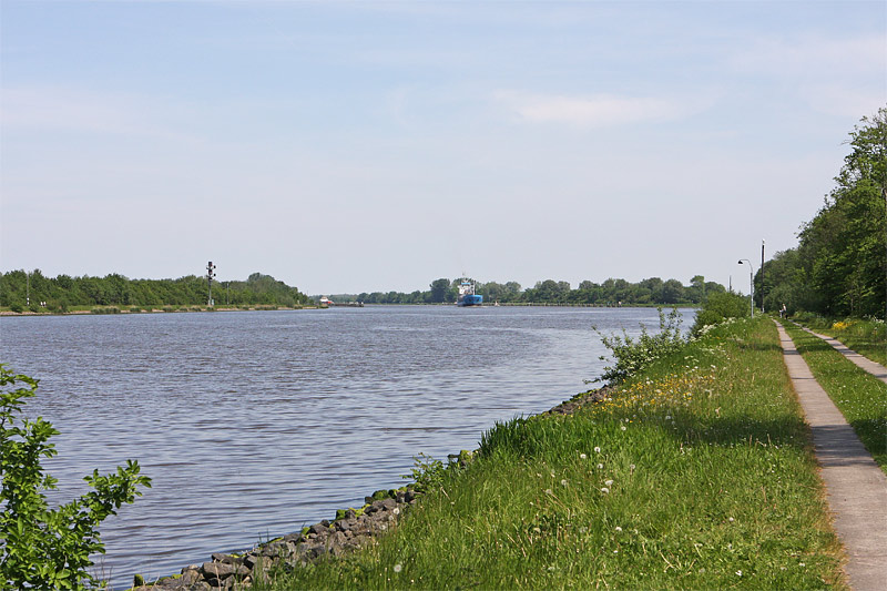am Schöpfwerk "Claustal", südwestlich der Kanalweiche von Breiholz, guter Standort ab ca. 11:00 bis ca. 16:00. Wenige Parkmöglichkeiten befinden sich beim Schöpfwerk. Eine Brennweite von bis zu 200 mm ist ausreichend. Von diesem Standort ist der Kanal bis zur Kanalbiegung hinter der Fährstelle "Breiholz" einsehbar. - Zwischen diesem Fotostandort und "Schachtholm" wird nur eine Fahrzeit von etwa 6 Minuten mit dem Wagen benötigt, um die Position zur Sonne deutlich zu verändern. - |