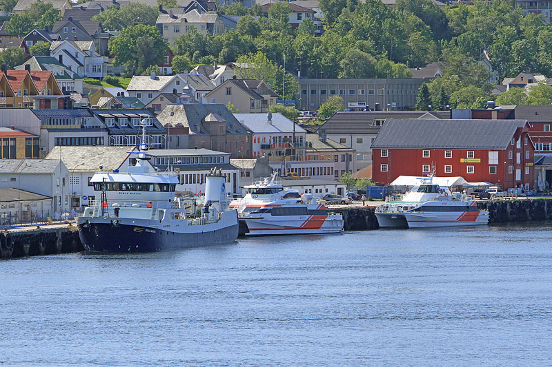 00:15 p.m., arrival in "Sandnessjøen". View southward into the harbour on the fishing vessel
