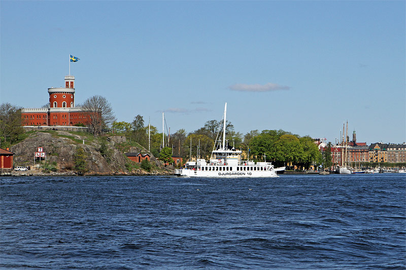 | Bemerkung | Blick nach Nordnordwesten entlang der Insel Kastellholmen mit dem "Schloss Kastellholmen" Richtung der Insel Skeppsholmen, vor der gerade die Fähre Djurgården 10 vorbeizieht. Im Hintergrund ist noch einmal das Segelschiff HMS Falken zu sehen. |