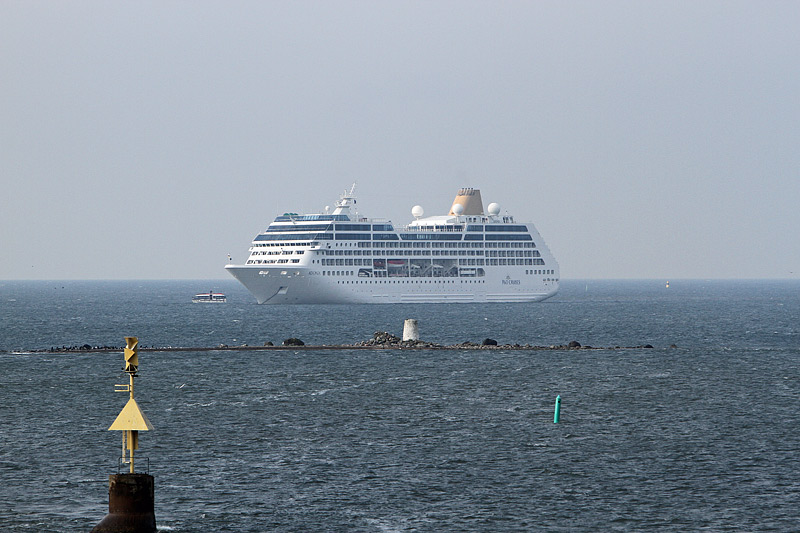 Blick nach Süden auf das Kreuzfahrtschiff