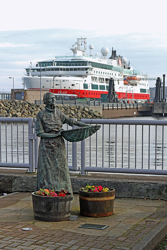 | Comment | 05:40 p.m. - after the bus tour we went on a city tour - the photo shows one of 2 statues of a "Herring Woman" - the herring women of the northern Scottish islands played a prominent role in the herring industry. In the Hebrides alone, around 3,000 women worked in this industry between 1850 and WW2. - in the backgound you can see "our" ship Fram |