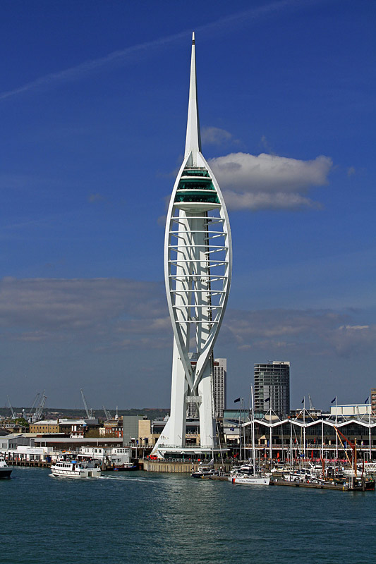 view northeastward on the "Spinnaker Tower", at this point in the most beautiful sunlight